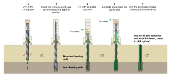 На самом деле, сваю не «устанавливают» — её создают прямо в скважине.