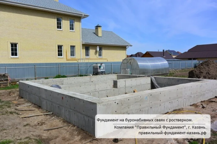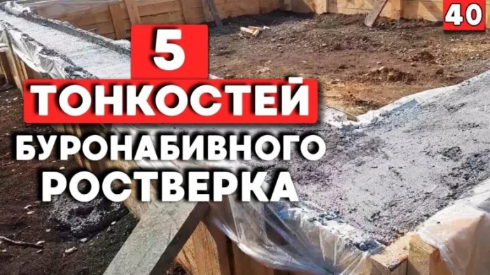 | Заливка | Сразу весь ростверк, послойно, с вибрированием | Бетононасос, глубинный вибратор |