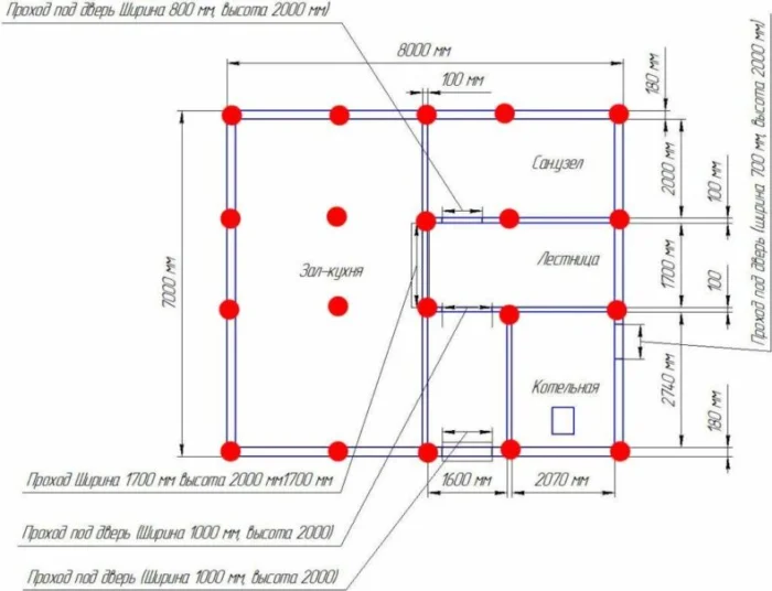 Лёгкий каркасник — можно ставить сваи Ø300 мм с шагом 2 м. Кирпичный двухэтажный дом — уже Ø500 мм и шаг 1.5 м.