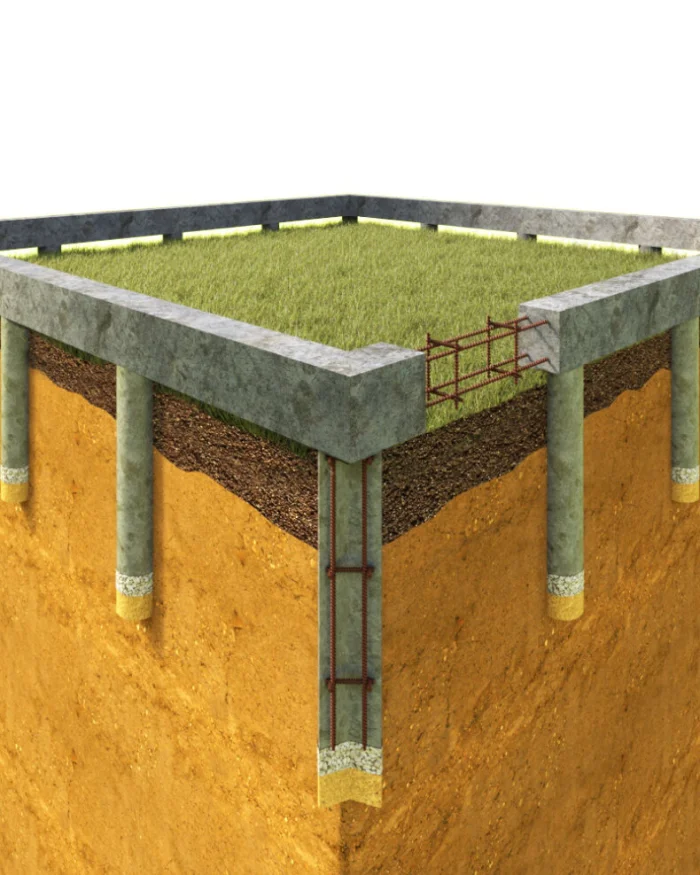 | Работает на любых грунтах | Сваи уходят до устойчивых слоёв — даже через торф или плывун | Болотистые, песчаные, глинистые участки |