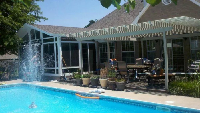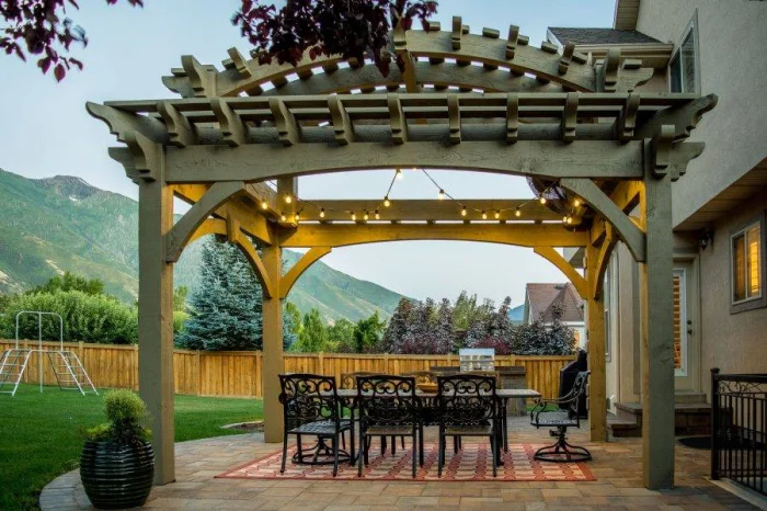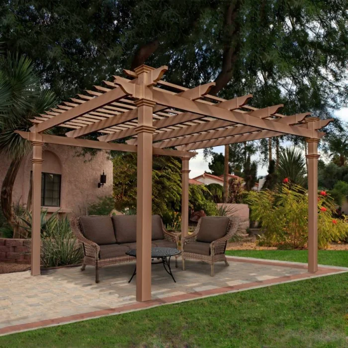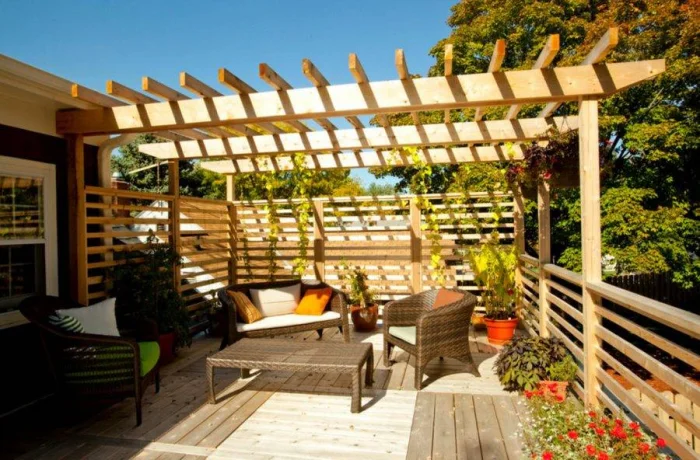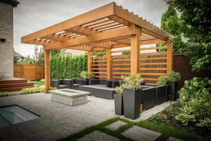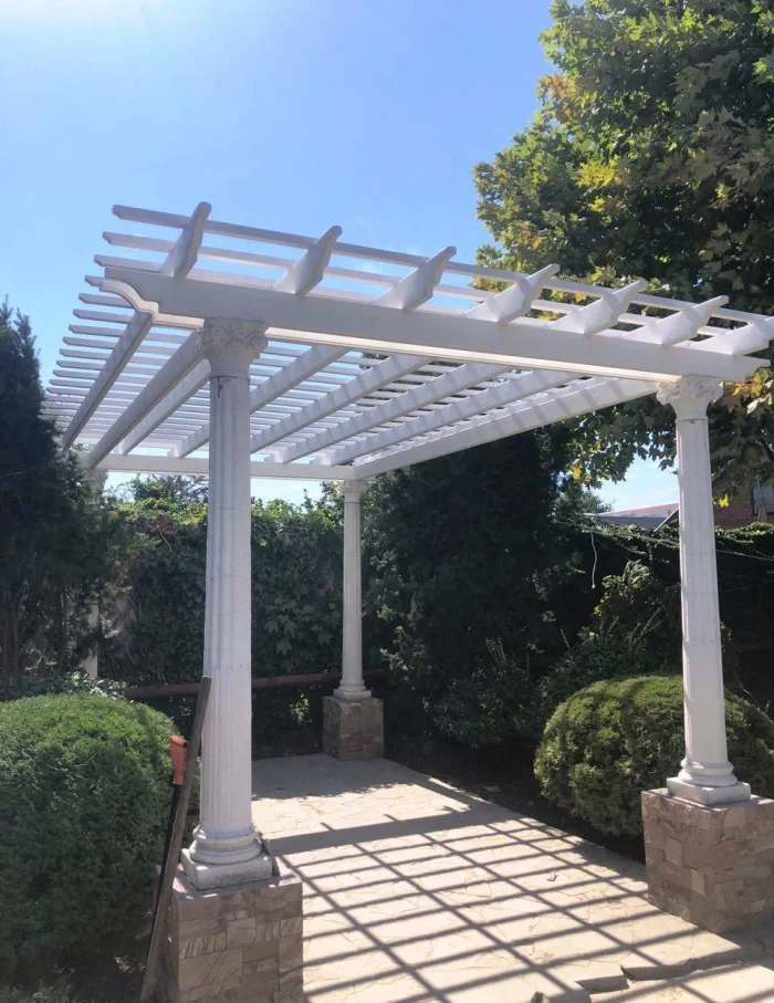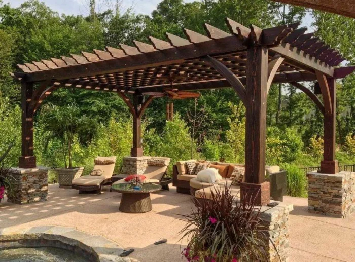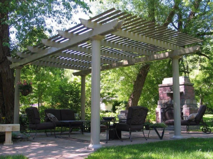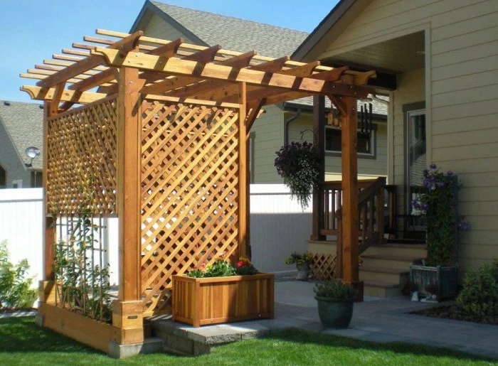 Представьте себе полуоткрытую беседку со стенами и крышей в виде решётки. Вот это и есть пергола. Она отлично спасает от солнца, создаёт уют, но от сильного дождя или ветра, конечно, не защитит. Летний вариант, не более.