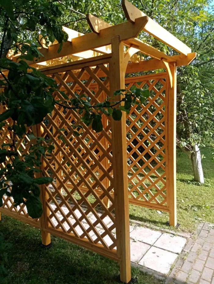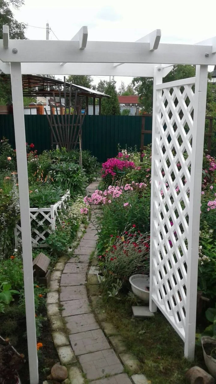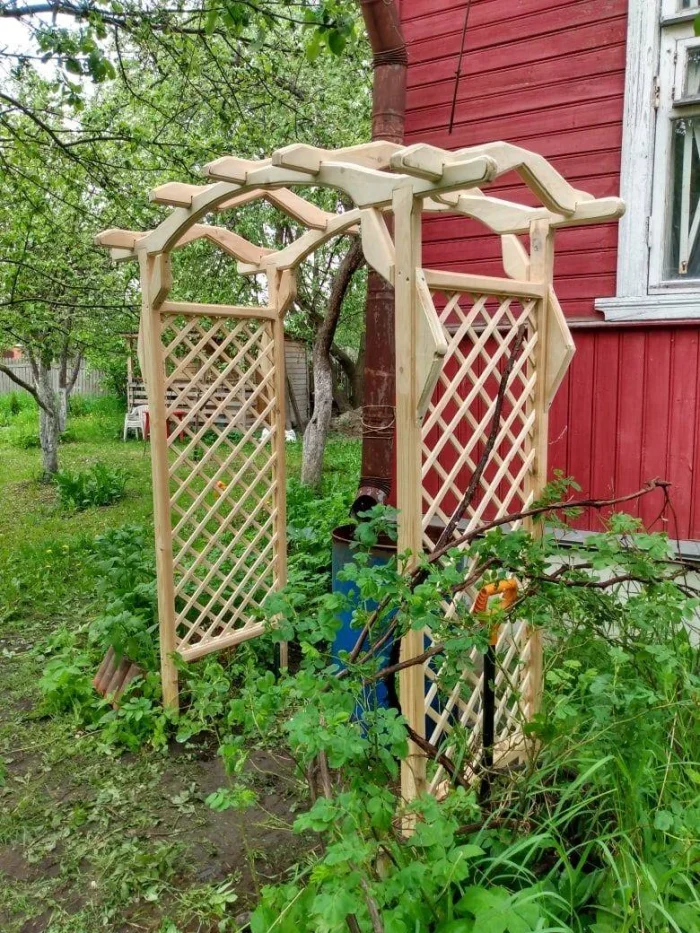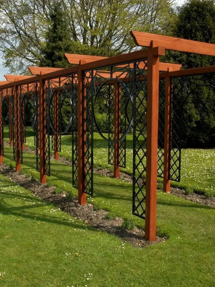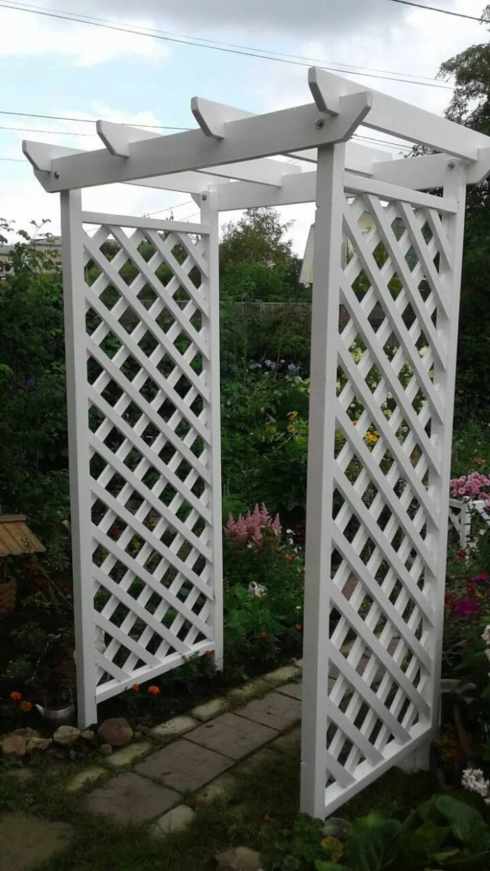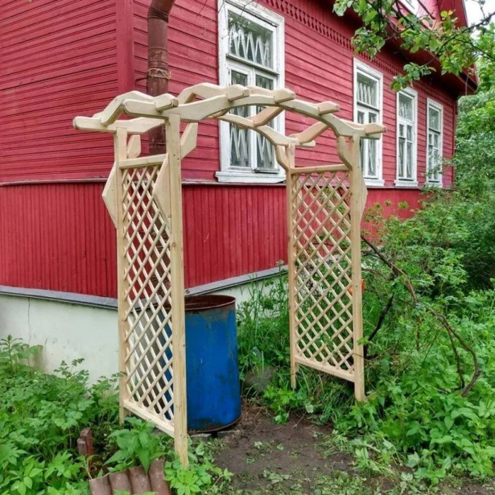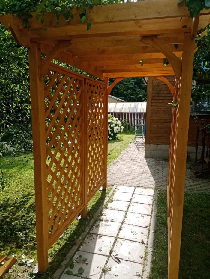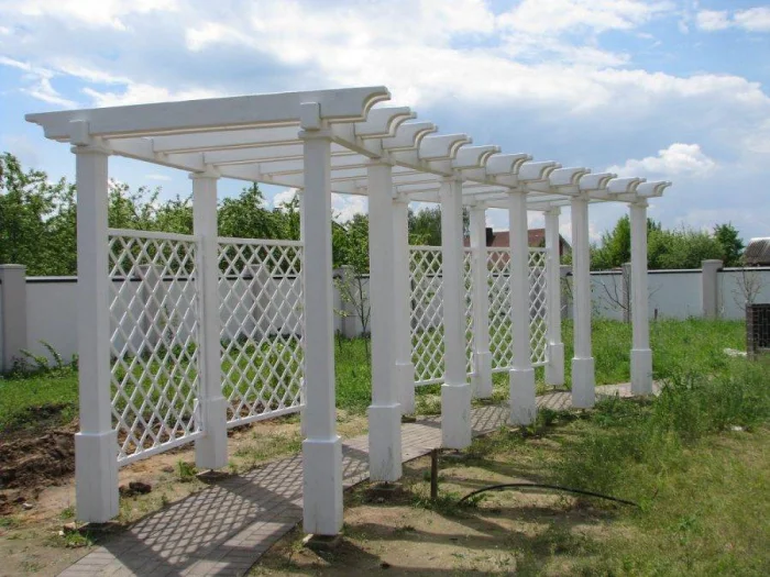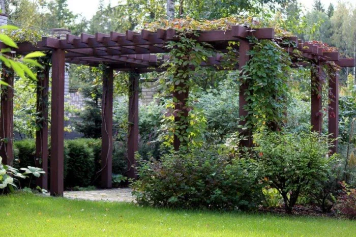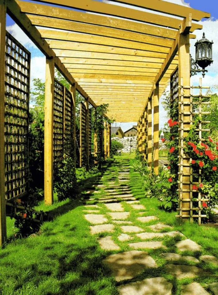 В последнем случае форма может быть не только квадратной, но и треугольной. А «коридор» — это, по сути, длинный навес над тропинкой. В любом случае, это готовая опора для винограда, роз или клематисов. И это, между прочим, тоже её важная функция — украшать ландшафт.