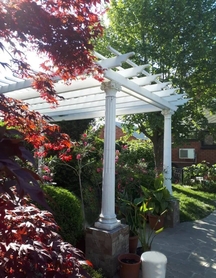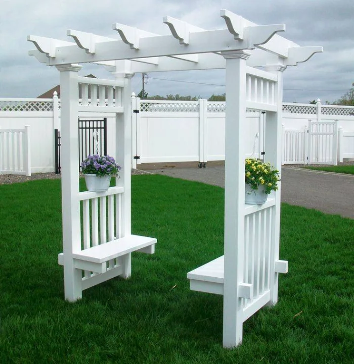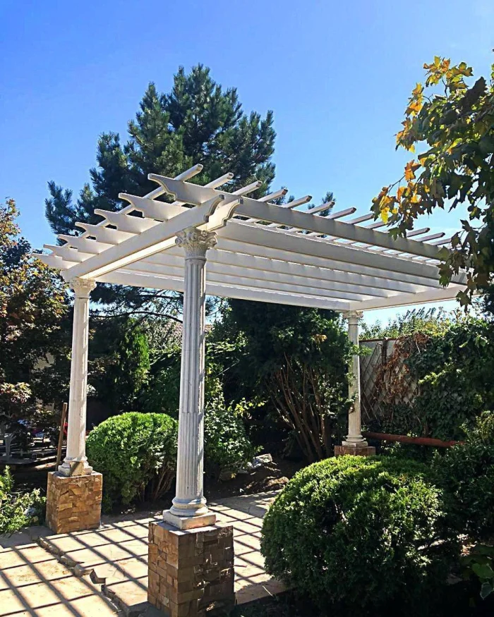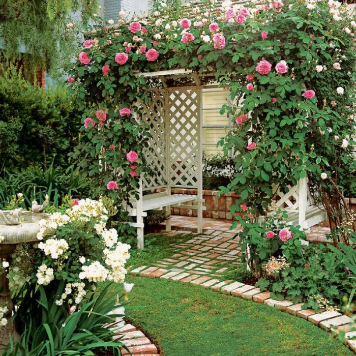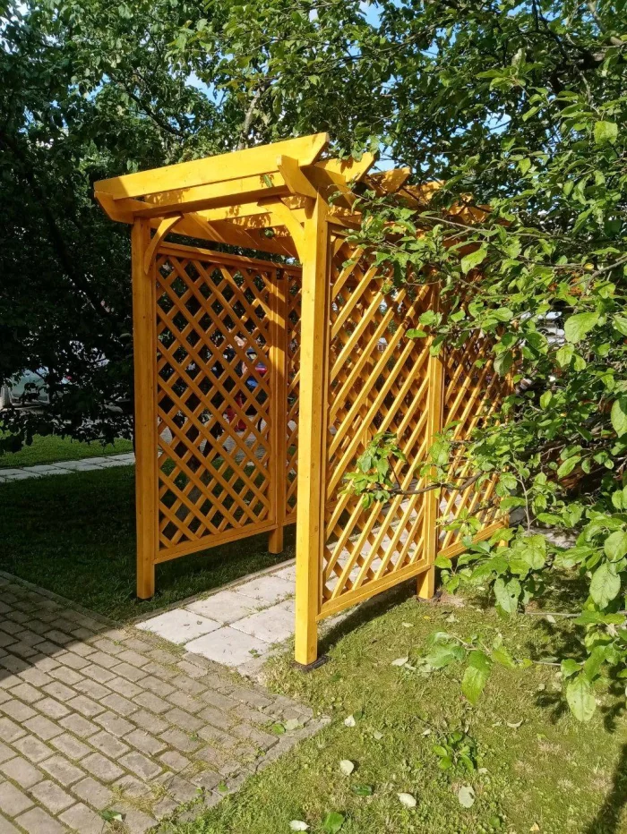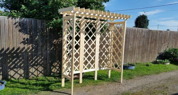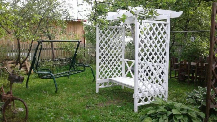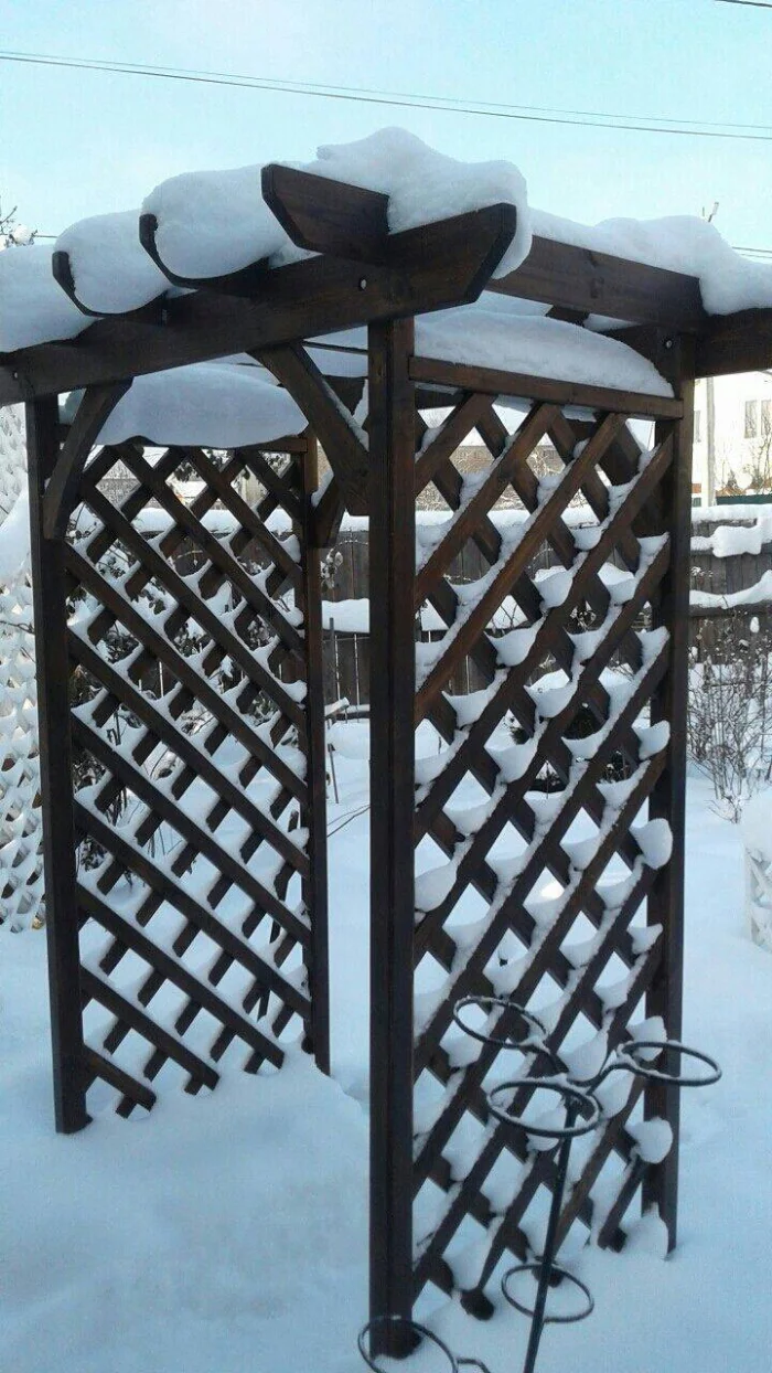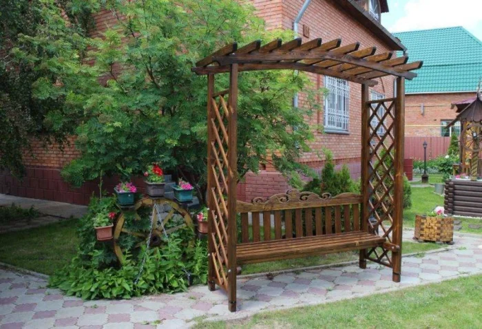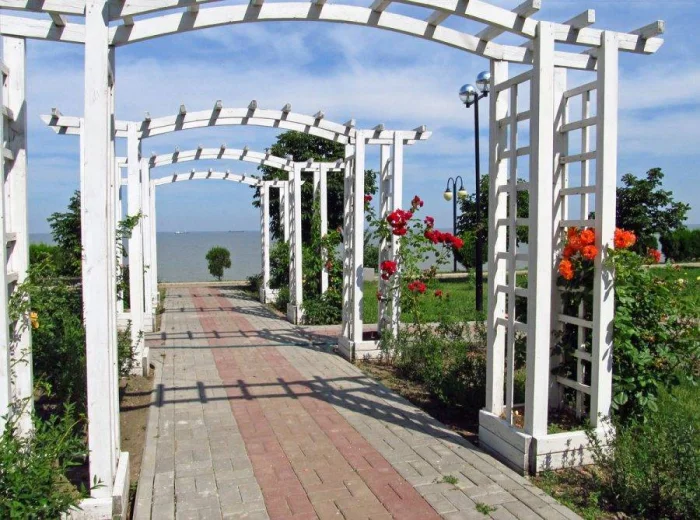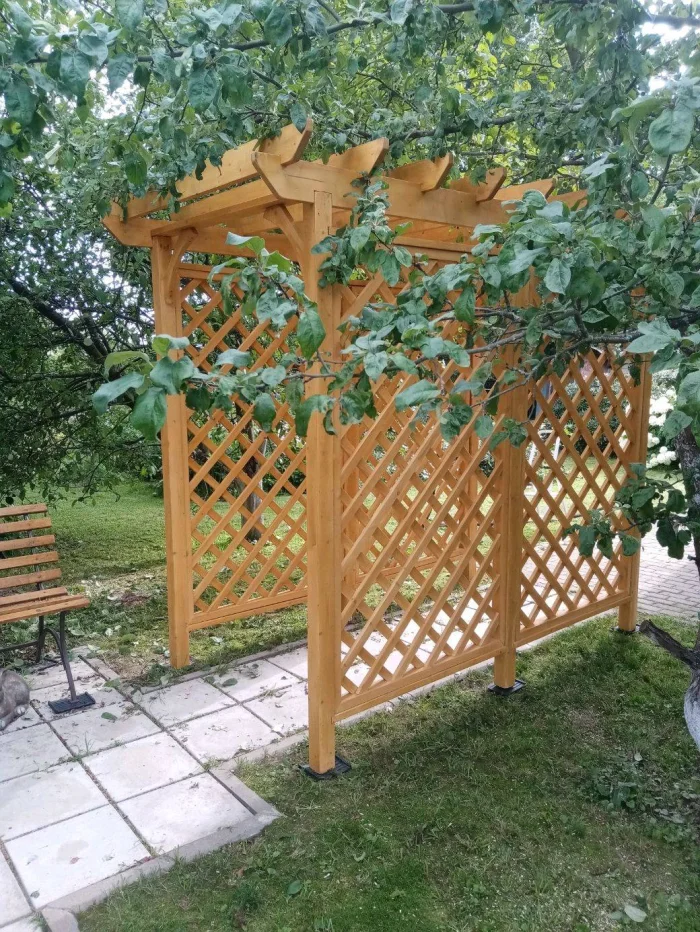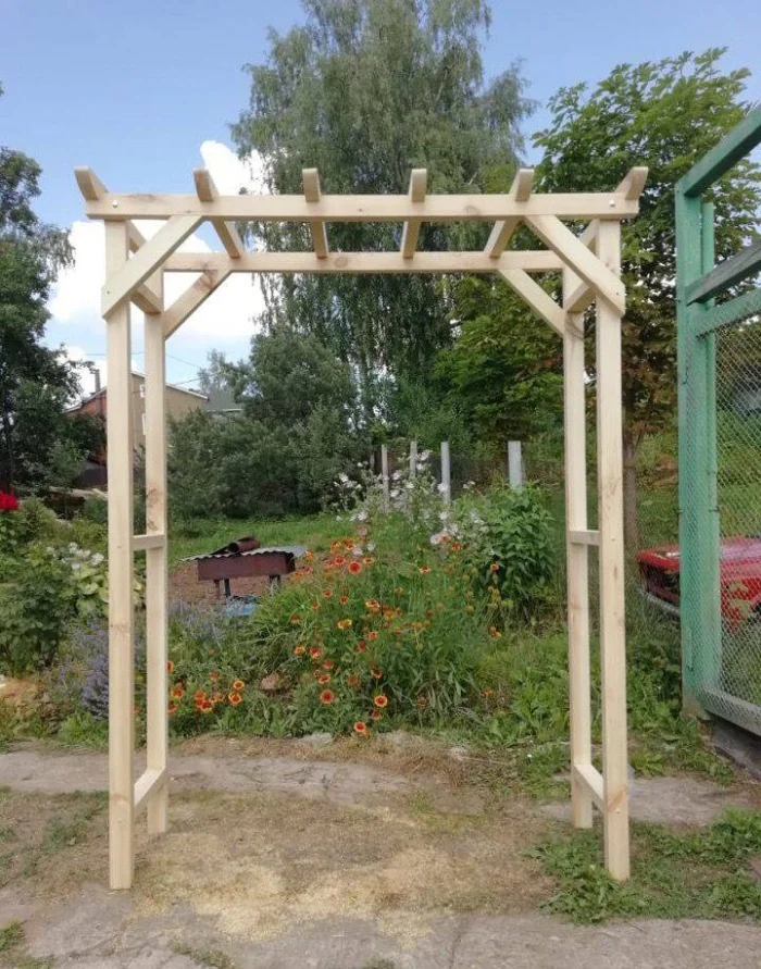 В последнем случае форма может быть не только квадратной, но и треугольной. А «коридор» — это, по сути, длинный навес над тропинкой. В любом случае, это готовая опора для винограда, роз или клематисов. И это, между прочим, тоже её важная функция — украшать ландшафт.