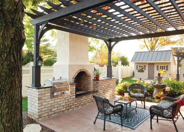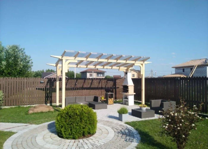 Мангал внутри перголы — идея спорная, но реализуемая. Для него потребуется:
