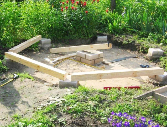 - Сделать настил на земле: из досок, плитки или просто отсыпать гравием.
