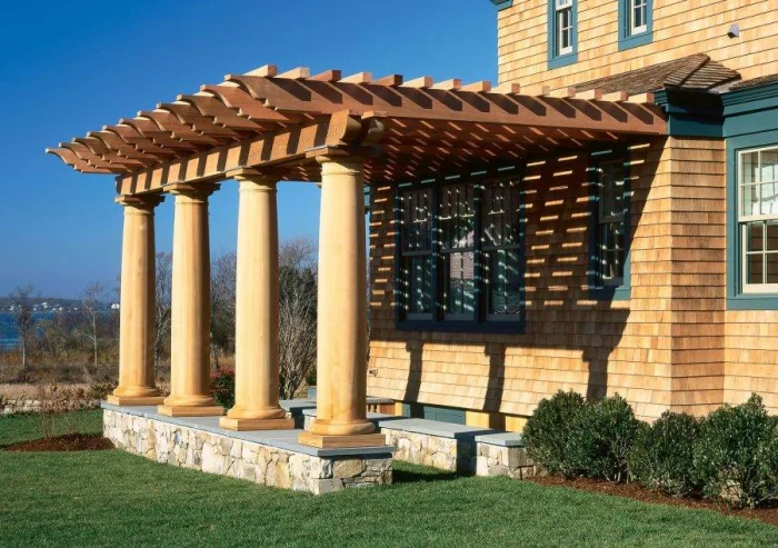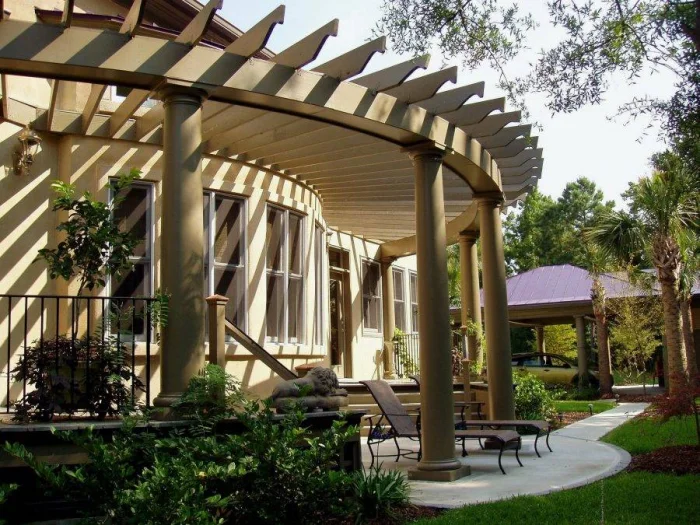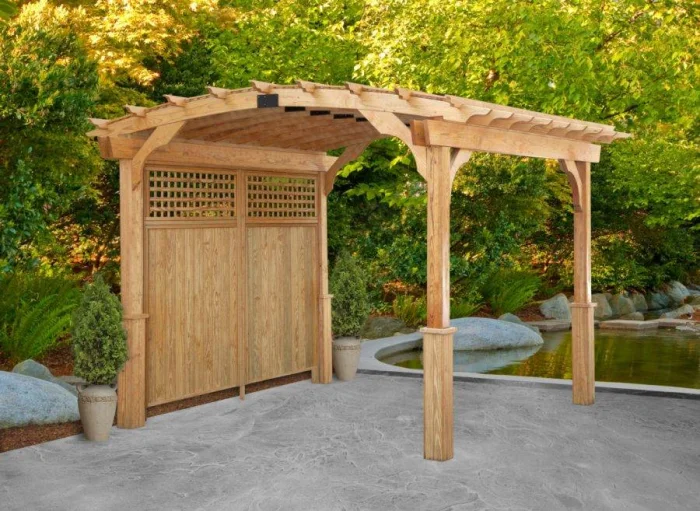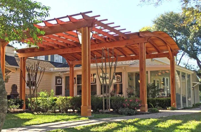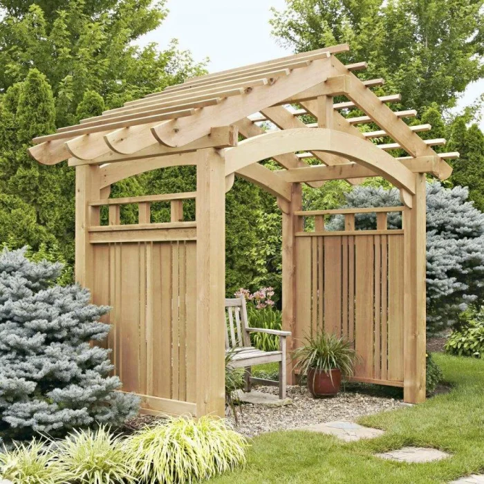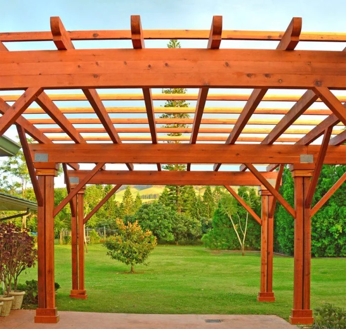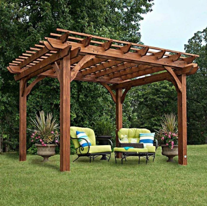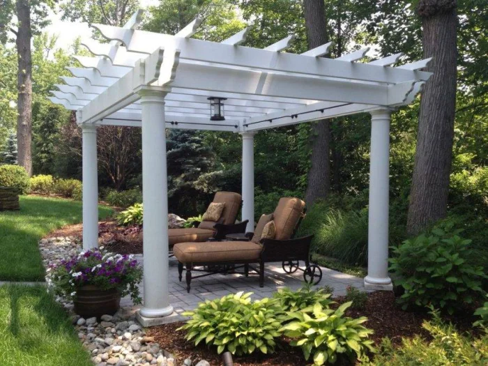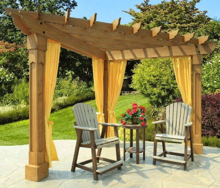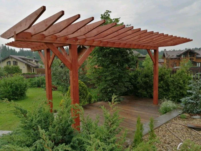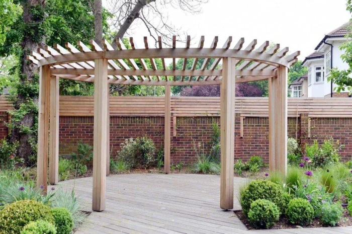 Традиционно перголы делают прямоугольными или квадратными. Но зачем ограничиваться? Форма должна вытекать из задачи: