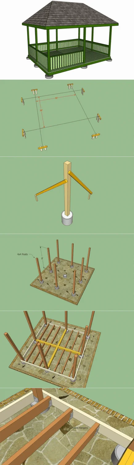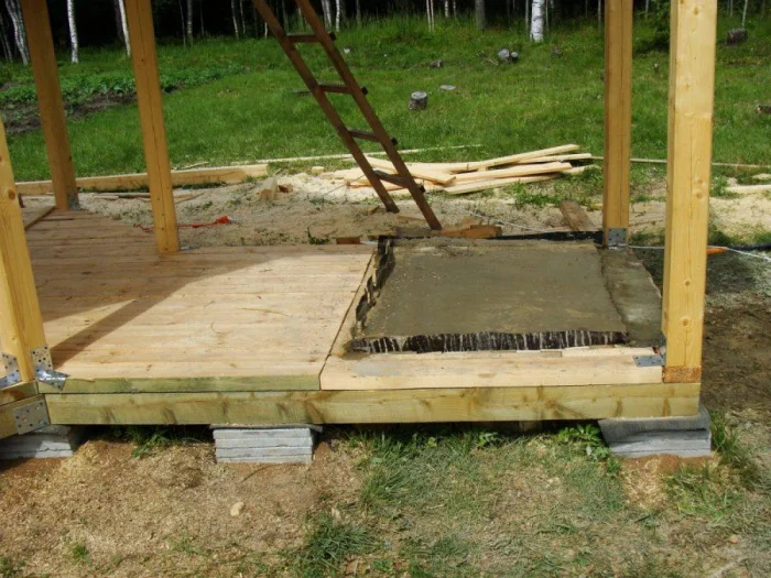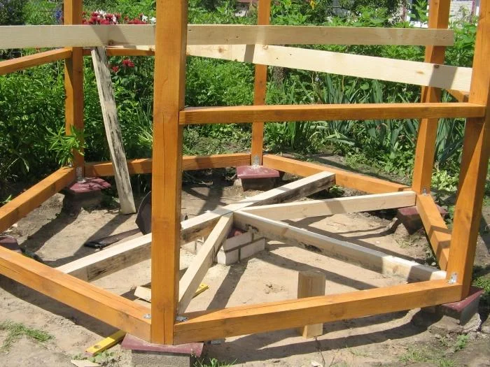 Для деревянной беседки столбчатый или свайный фундамент — лучший друг. Он приподнимет пол над землей, обеспечивая долговечность всей конструкции.