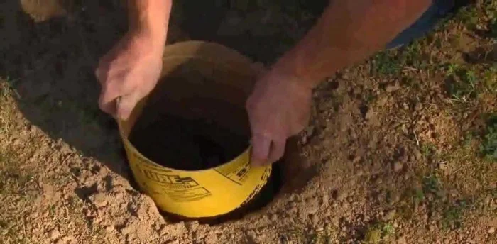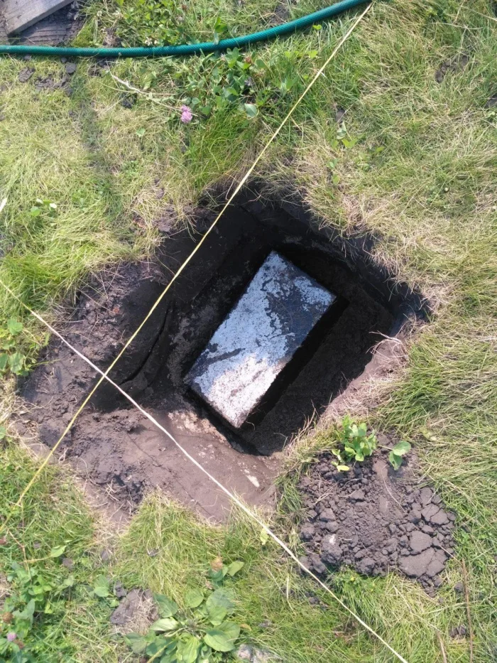 Сделайте разметку и снимите плодородный слой грунта примерно на 20 см. Образовавшуюся площадку засыпьте песком и хорошо утрамбуйте — это наш дренажный слой.
