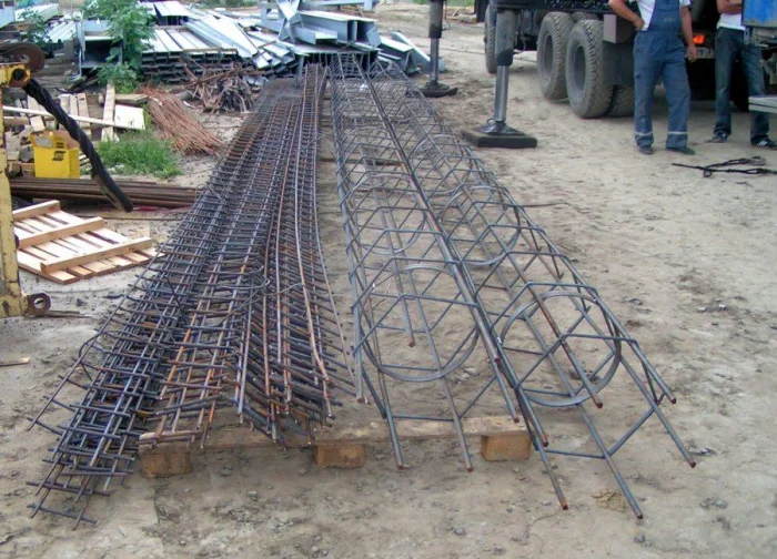 В нашем случае копаем ямы. По углам будущей беседки, а если она больше 1.5 метров в длину или ширине — то и через каждые полтора метра. Глубина — около 80 см, ширина — 40х40 см. Для опалубки подойдут специальные щиты или просто прочные, негнущиеся доски. Внутрь помещаем арматурный каркас из 3-4 прутьев. Это и есть железобетон. Кто-то сразу закладывает в бетон металлические анкеры, чтобы потом просто прикрутить к ним деревянные стойки.