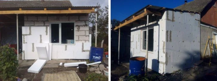 Здесь все наоборот. Утепление снаружи — это правильный путь с точки зрения физики. Точка росы выносится наружу, конденсат не скапливается в стене, и внутреннее пространство остаётся нетронутым. Но приготовьтесь быть синоптиком: работы возможны только в сухую и теплую погоду. Дождь или мороз ставят на них крест.