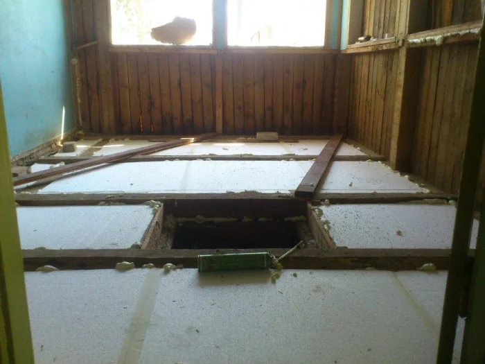 Стратегия зависит от типа фундамента. Если у веранды ленточный фундамент, проще всего утеплить существующий пол, не разбирая его.