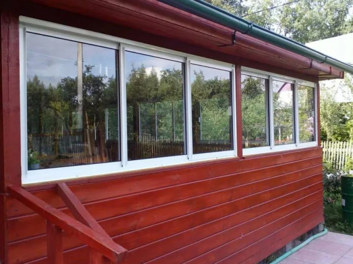 Большие окна веранды — это красиво, но холодно. Решение — установка современных стеклопакетов с двойным или тройным остеклением. Они не только сохранят тепло, но и избавят от уличного шума. При монтаже важно тщательно запенить все щели между рамой и стеной, особенно под подоконником.