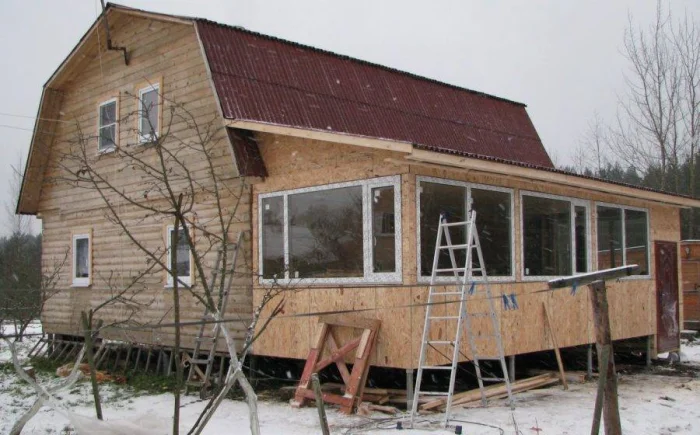 Отличное решение для того, чтобы сделать утеплённую веранду в деревянном доме, это монтаж вентилируемого фасада. Дома из кирпича, пеноблоков или шлакоблоков лучше всего утеплять по технологии мокрого фасада. Теплоизоляция тогда не нуждается в обрешётке.
