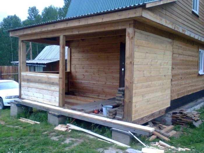 Для веранды на сваях алгоритм другой: снимаем доски пола, подшиваем снизу по лагам черновой пол, засыпаем керамзитом, укладываем гидроизоляцию и возвращаем настил на место.