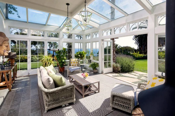 Кстати, если хотите чего-то более воздушного и современного, присмотритесь к поликарбонату. Гнутые листы, крепящиеся к каркасу, создают футуристичную крышу и стены, наполняя пространство мягким рассеянным светом. Это совсем другая эстетика.