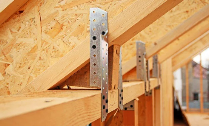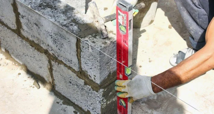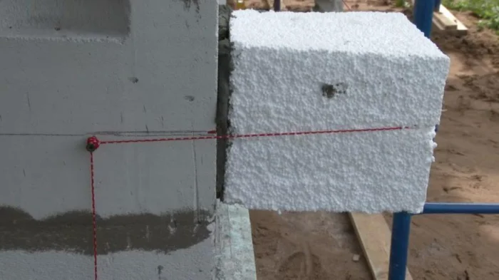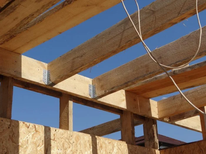 С помощью длинного уровня перенесите горизонт с существующей конструкции на место примыкания. Замерьте зазор — это и будет размер выемки, которую нужно выбрать в балке, чтобы она плотно села на стену.