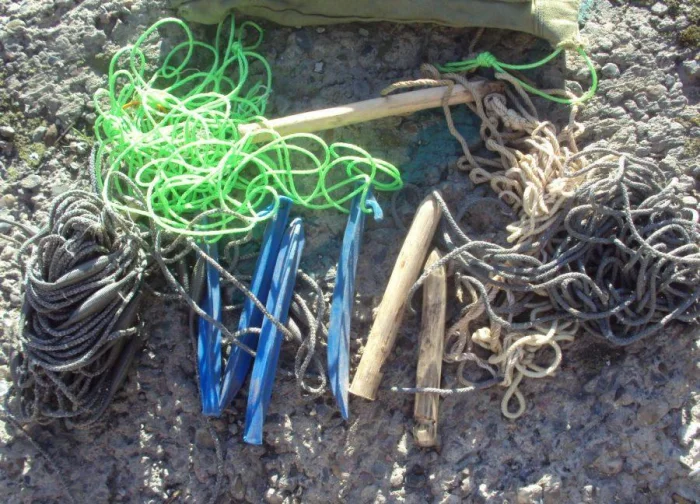 Согласно вашему плану, опоры должны стоять с определенным шагом, скажем, каждые 1500 мм. Отмеряем и отмечаем эти точки от стены и от внешнего края. Натягиваем веревки крест-накрест — получаем сетку. Места пересечений веревок — это и есть точки, где будут стоять наши столбы. Отмечаем их на земле краской из баллончика.