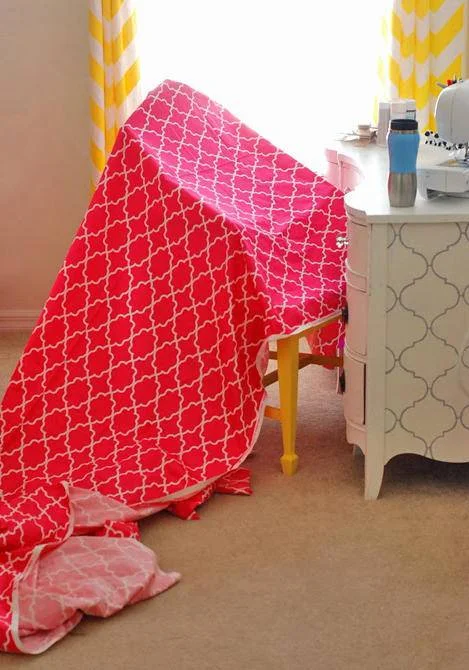 - Обработайте края, если ткань осыпается: подогните дважды и прострочите.
