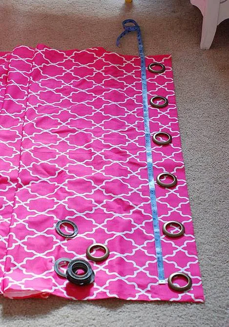 - Для красивых складок равномерно установите люверсы по верхнему краю.