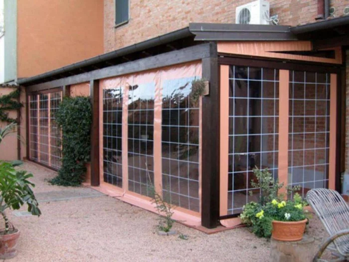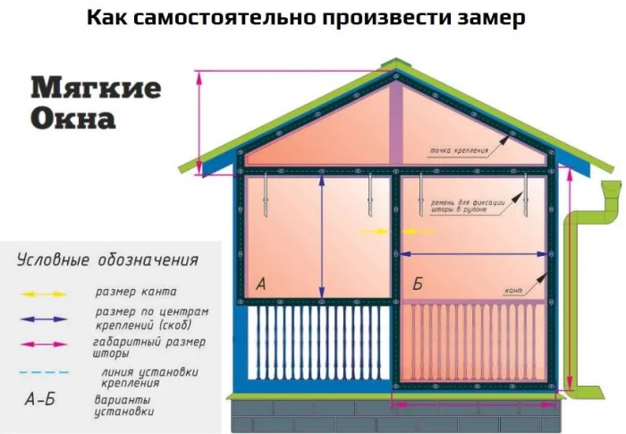 - Снимите точные размеры каждого проёма. Берите ткань с запасом. Для защиты от дождя акрил или ПВХ предпочтительнее.