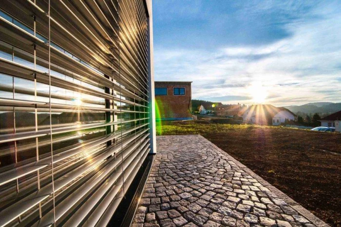 Это уже не ткань, а основательные деревянные или металлические жалюзи, которые крепят снаружи. Они отлично защищают от солнца и даже немного приглушают уличный шум. Конструкция планок продумана так, чтобы вода не задерживалась, а стекала вниз. Дерево, конечно, пропитывают защитным составом, а металл используют нержавеющий.