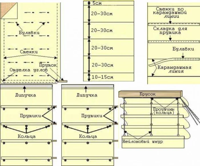 - Небольшие деревянные штанги (реечки) для создания складок.