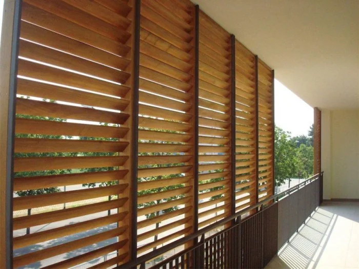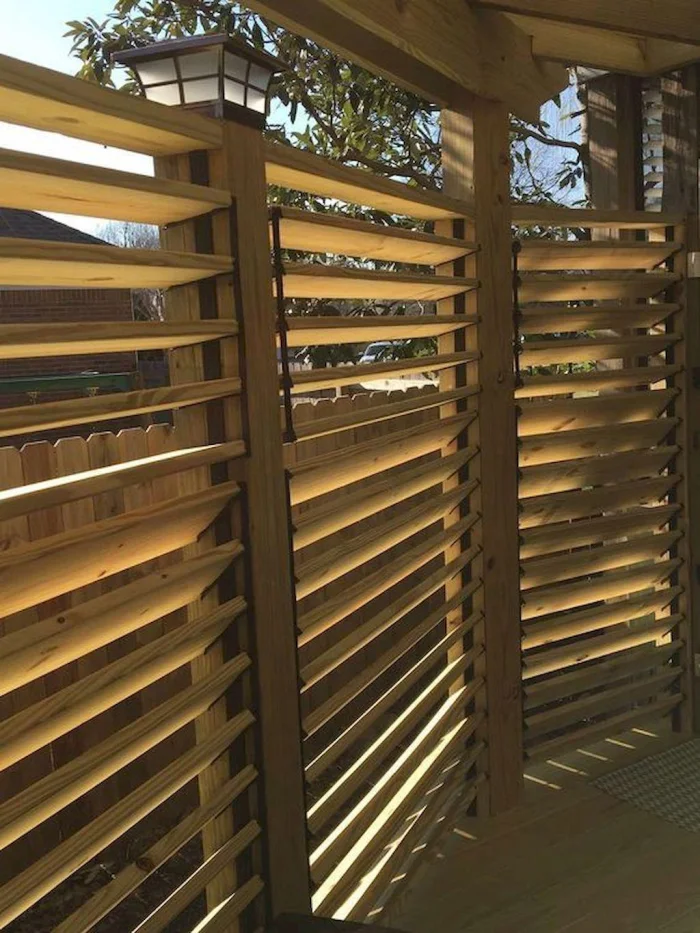 Главный козырь дерева — его бессмертная эстетика. Деревенский шарм, ощущение истории, благородство фактуры. Такие жалюзи подойдут к любому стилю. Их изготавливают из разных пород, а при желании можно подобрать оттенок или покрытие. Это всесезонное решение, защищающее и от дождя, и от ветра.