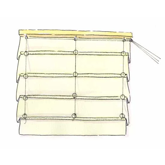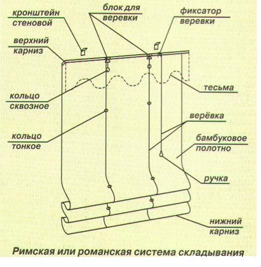 - Римские шторы. Классика. Поднимаются аккуратными горизонтальными складками.