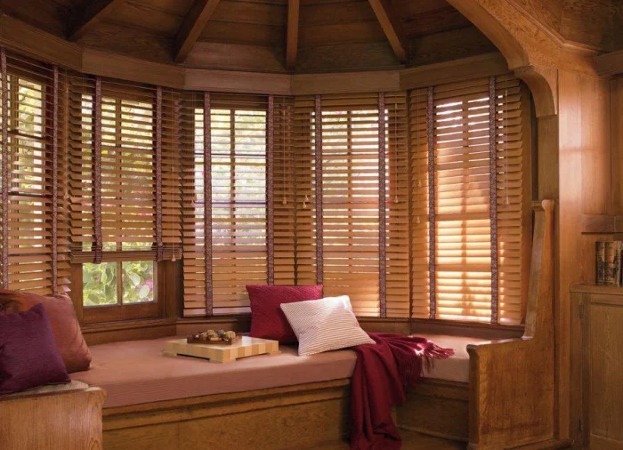 Дерево. Оно придаёт солидность и тепло всему, чего касается. Деревянные жалюзи — это традиция, роскошь и долговечность. Они блокируют свет практически полностью, особенно модели без отверстий.