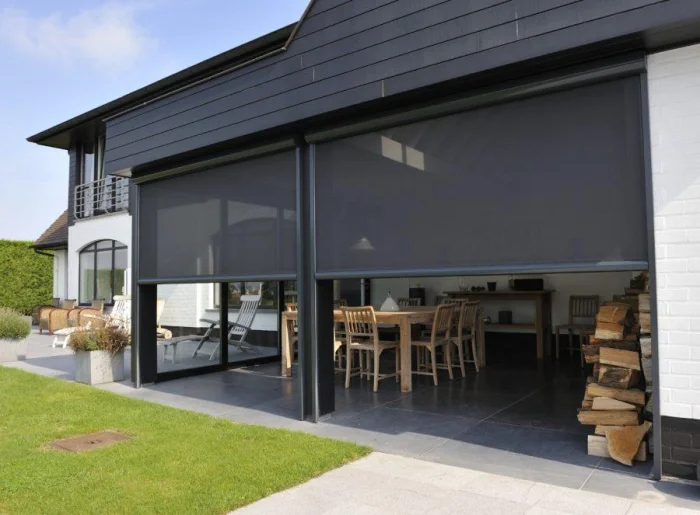 Чаще всего тканевые жалюзи — вертикальные. Их гладкий, строгий вид одинаково хорошо работает в современном доме и на просторной террасе. Идеальный вариант для панорамных проёмов и дверей в сад.