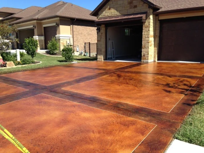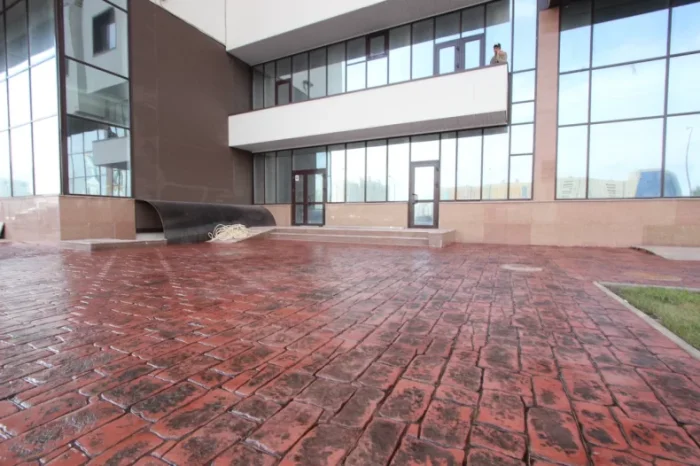 Не подвергайте свежеуложенный цветной бетон экстремальным нагрузкам и химическим атакам. Регулярно мойте поверхность мягкими средствами без абразивов и кислот. Своевременно удаляйте масляные пятна.