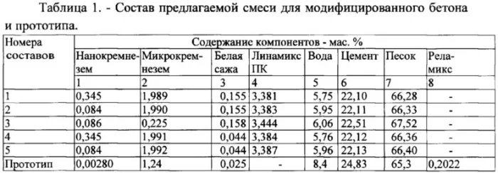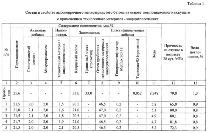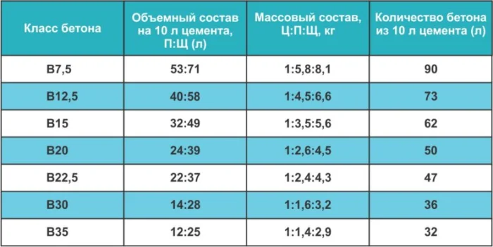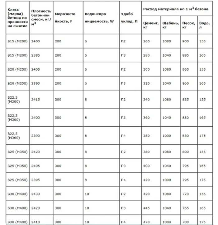 Мы выбрали бетон класса B25 со следующими усреднёнными пропорциями компонентов по массе: