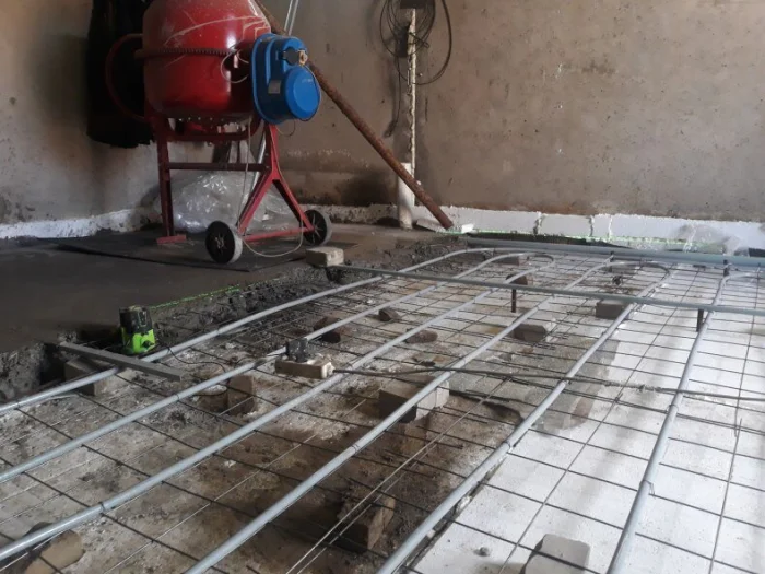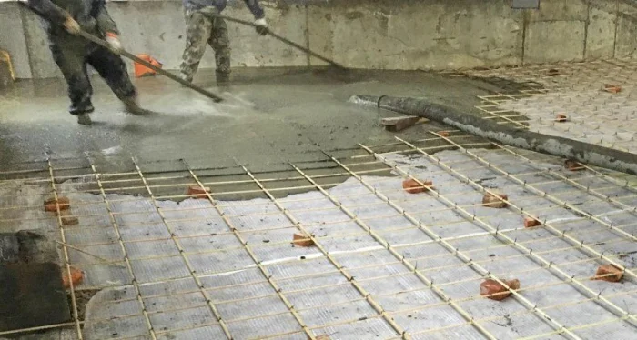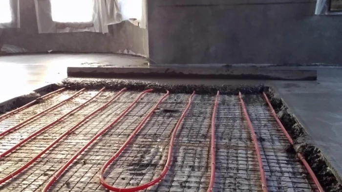 При монтаже, например, полов с подогревом, технология включает укладку теплоизоляционного слоя, армирующей сетки, труб или кабелей обогрева и только затем — заливку тёплой бетонной стяжки, которая будет аккумулировать и равномерно распределять тепло.
