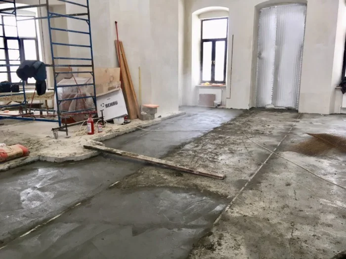 - Утепление существующих конструкций. Например, заливка стяжки пола с теплоизолирующими свойствами или утепление фасада методом «мокрого» фасада с использованием лёгких бетонных смесей.