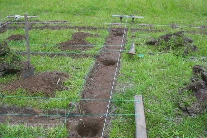 На этапе разметки и копки не поленитесь лишний раз все перепроверить. Исправить кривизну позже, на этапе кладки стен, будет невероятно сложно и дорого.