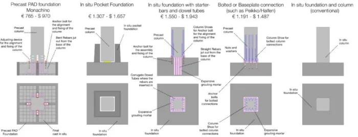 В свежий бетон фундамента на расчётную глубину закладывают анкерные болты. После затвердевания бетона на эти болты через просверленные отверстия устанавливают опорную плиту колонны, наживляют гайки, выверяют колонну по уровню и отвесу, затем окончательно затягивают. Пространство между плитой и бетоном часто заполняют безусадочным цементным раствором (например, ВЦ).
