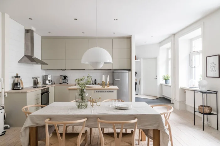 Бежевый холодильник растворится в общем фоне, сохранив целостность картины. Но есть риск, что интерьер станет слишком монотонным. Где грань между гармонией и скукой?