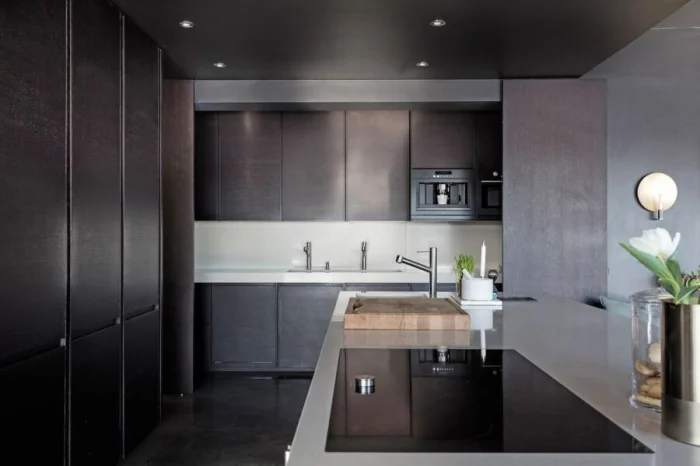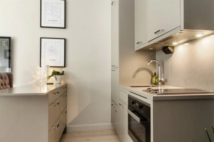 Современный стиль (модерн, минимализм). Идеален для визуального расширения пространства. Четкие линии, встроенная техника, скрытое хранение, монохромная или сдержанная палитра. Здесь царит порядок и ощущение простора. Такой дизайн может преобразить даже крошечную кухню-гостиную.