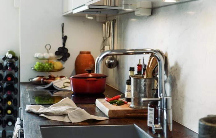 Присмотритесь к умной сантехнике и технике. Тот же кран с кипятком – это не роскошь, а освобождение места на столешнице. Индукционная панель с отводом воздуха вниз – радикальное решение проблемы вытяжки.