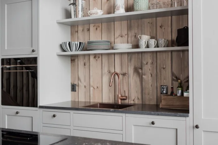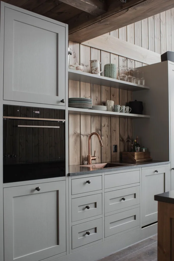 Интересный тренд — полностью скрытый гарнитур. Его можно замаскировать под стену панелями или спрятать в нишу за раздвижной перегородкой. Идеально для кухни-гостиной, чтобы в любой момент превратить рабочую зону в часть гостиной. Идеальный выход для тех, кто не всегда успевает к приходу гостей навести идеальный порядок.