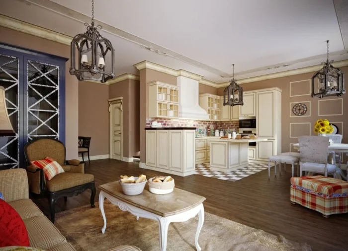 Простота, удобство и рукотворное тепло. Характерные черты: массивная деревянная мебель, керамика, текстиль в клетку или с цветочным принтом, элементы народного промысла. Стиль для тех, кому важны традиции и ощущение настоящего, не показного уюта.