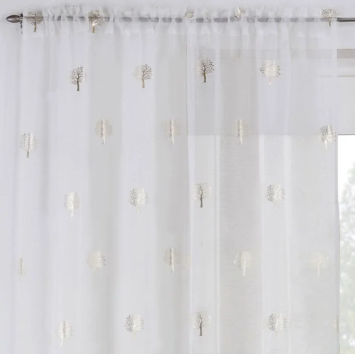 - Восточный стиль: Тюль с золотой или серебряной нитью (люрекс) добавит нужного лоска и таинственности.