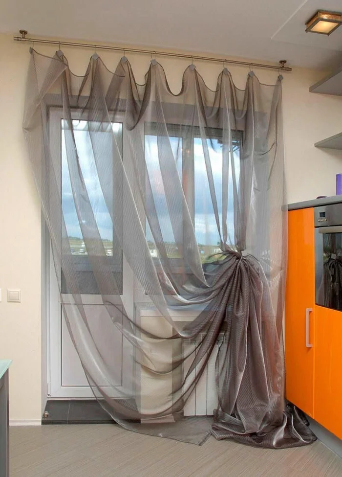 Отдельный квест — кухня с балконной дверью. Тюль здесь не должен превращаться в препятствие на пути к свежему воздуху. Идеально, если он будет маскировать дверную коробку, но при этом легко отодвигаться.