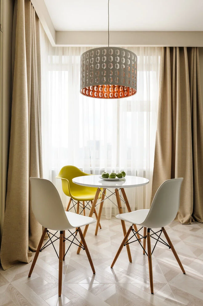 Если любите комбинацию тюля и плотных штор, начните с белого тюля — он сочетается с чем угодно. Или сыграйте на нюансах, подобрав два оттенка одного цвета.