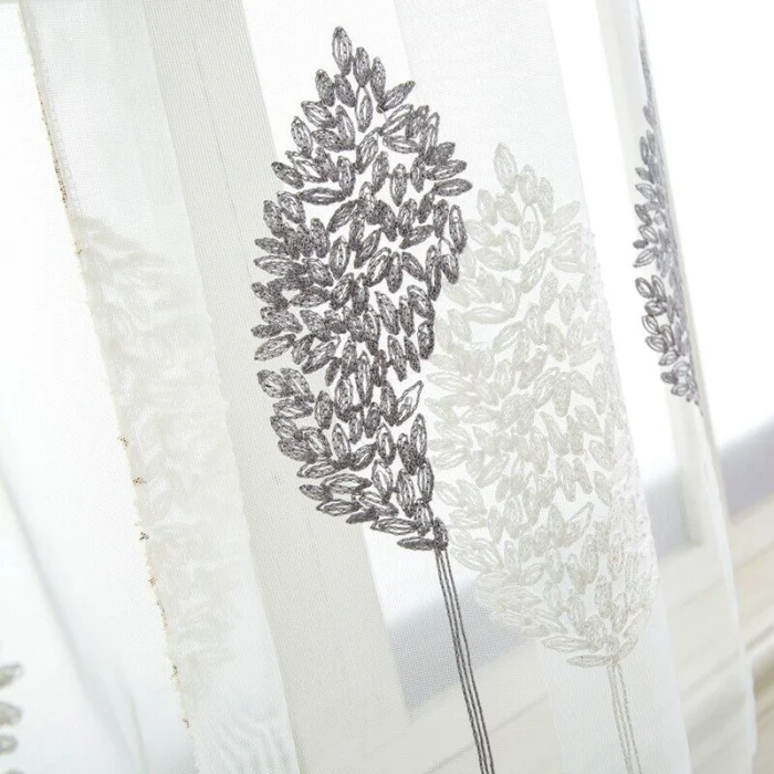 Сейчас в моде тюль с персонализацией: вышитыми инициалами, геометрическими орнаментами, необычной фактурной выработкой полотна. Такие детали превращают обычную занавеску в арт-объект.