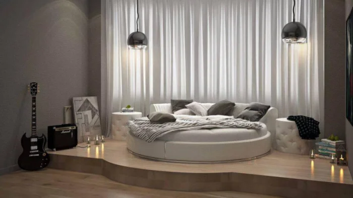 Смелый, скульптурный, театральный. Акцент, вокруг которого строится весь интерьер. Чаще встречается в стилях минимализм, хай-тек или в восточных мотивах. Требует большого зала и уверенности в собственном вкусе. Но уж если решились — равных по эффекту не найдёте.