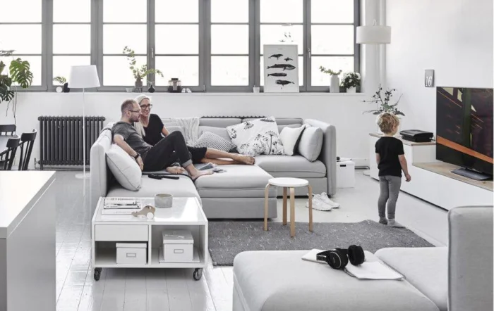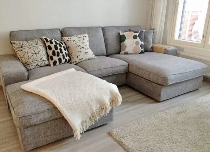 Царь современных гостиных. Многие модели теперь трансформируемые — можно менять сторону расположения угла. Требует простора, в тесной комнате будет смотреться громоздко. Но в помещении среднего размера создаёт невероятно удобную зону отдыха для всей семьи.