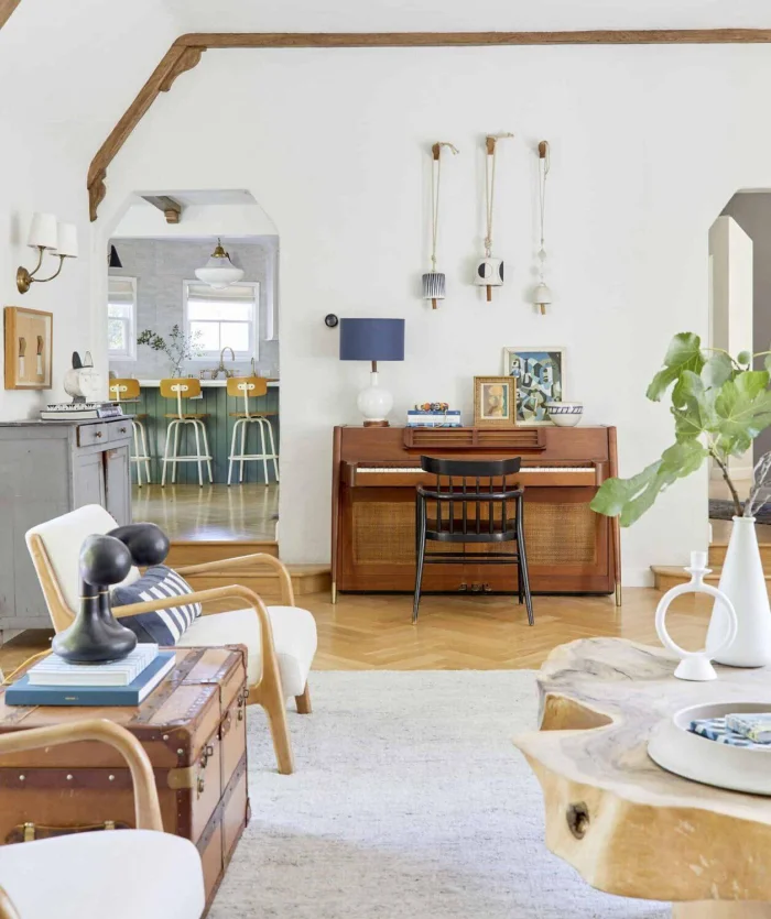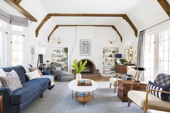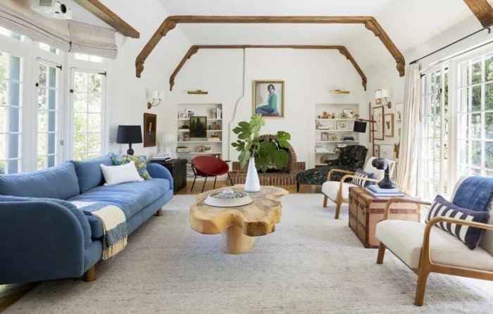 Дизайнер Крис Манало призывает вступить в новое десятилетие с чистого, свежего пространства. Основа — спокойные нюдовые тона, которые дарят чувство свободы и чистоты. Идеально сочетать их с теплыми «земляными» акцентами на фоне глубокого синего. Получается очень свежо и умиротворяюще.
