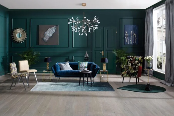 Чтобы создать по-настоящему расслабляющую атмосферу, подумайте о зеленом на всех стенах. Богатый оттенок вроде Jewel Beetle (цвет жука-знахаря) придаст комнате невероятную теплоту и глубину. Дополните интерьер мебелью шоколадного или кофейного цвета — и получите идеальный баланс.