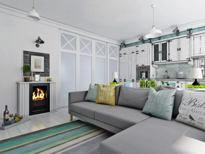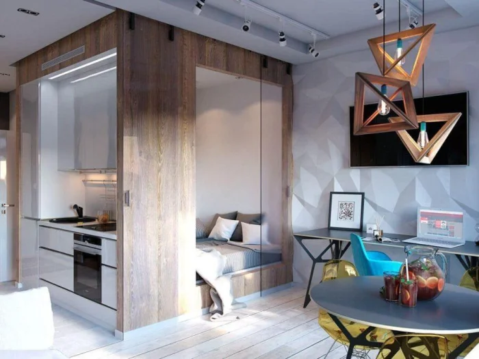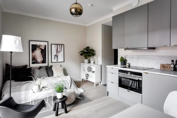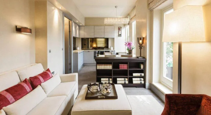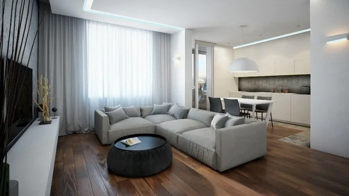 Цель — создать ощущение воздуха и простора. В этом помогают светлые стены, лаконичная мебель, скрытые системы хранения.